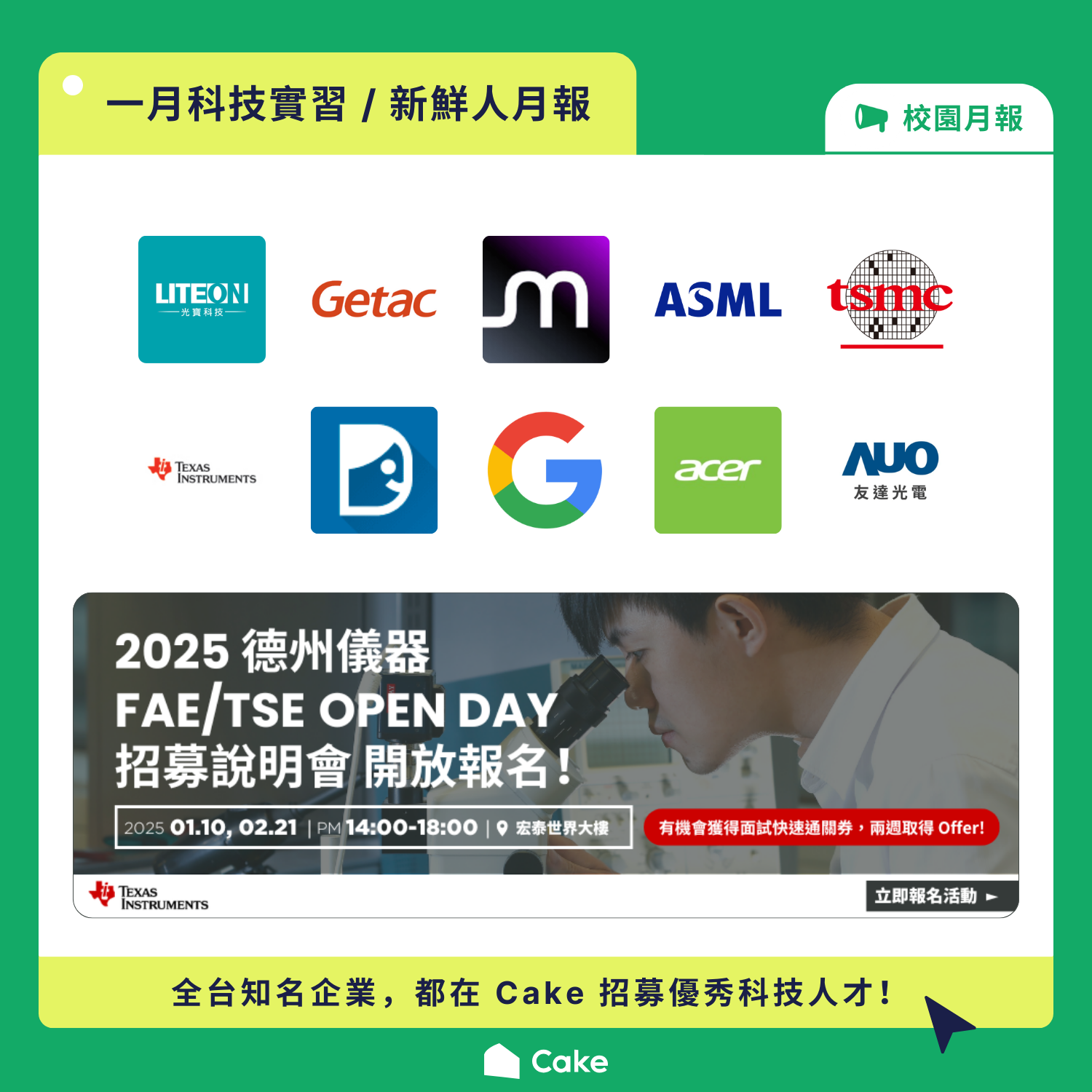【實習職缺】Cake 獨家1月科技實習 / 新鮮人月報