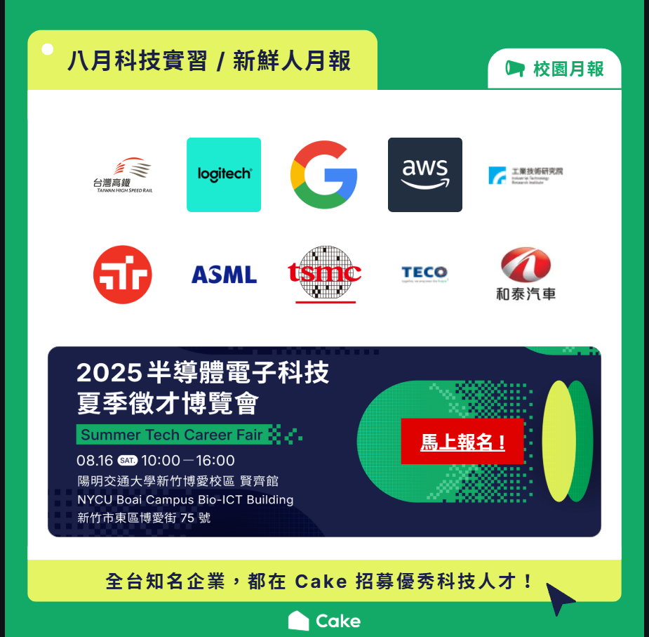 【 Cake 2025 半導體電子科技 夏季徵才博覽會 】
