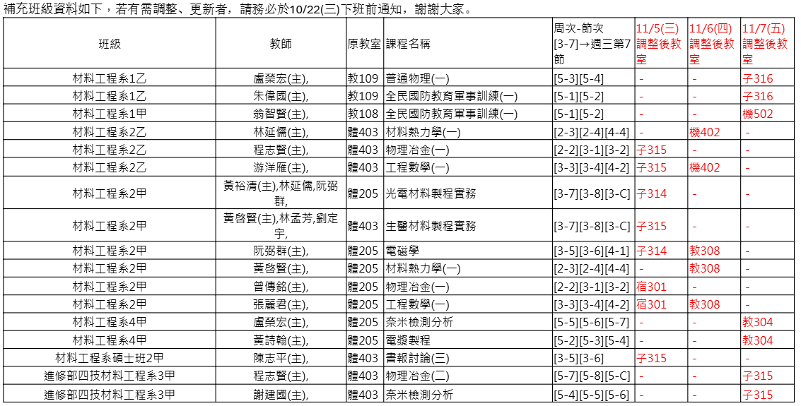 - 詳細調整公告:114年11月5-7日 教室調整公告 草案V.1